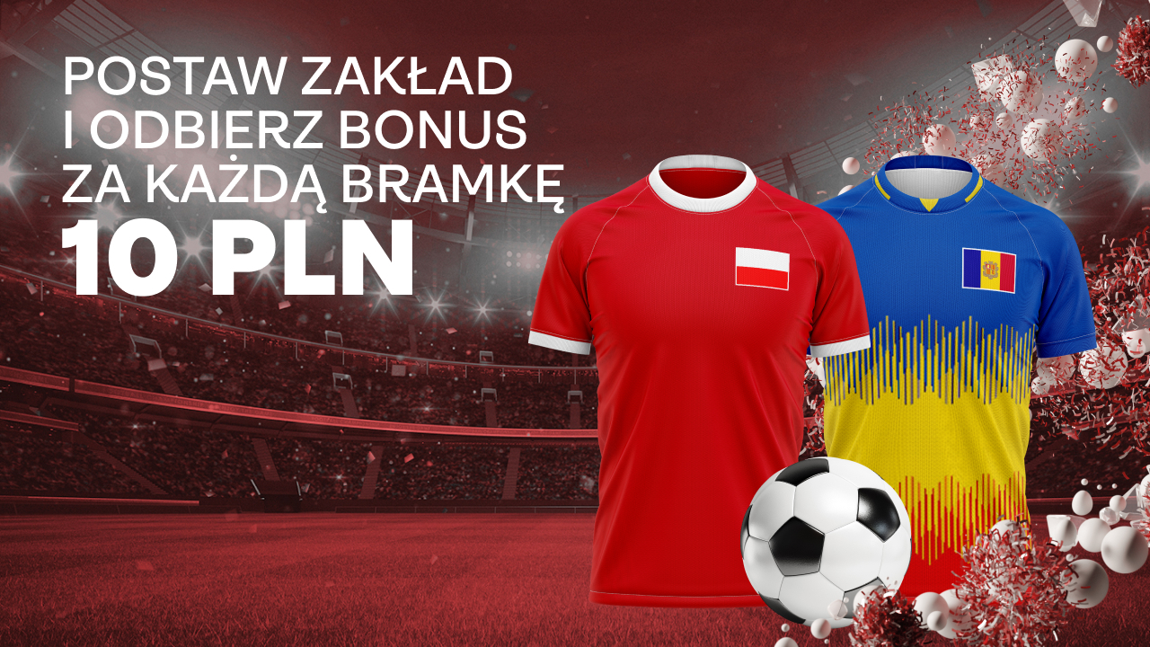 Zgarnij 10 PLN bonus za każdą bramkę strzeloną przez Polaków w meczu Andora - Polska! Postaw zakład na kwalifikacje do Mistrzostw Świata, strefy europejskiej, zawierający mecz Andora - Polska i odbierz bonus bez limitu!