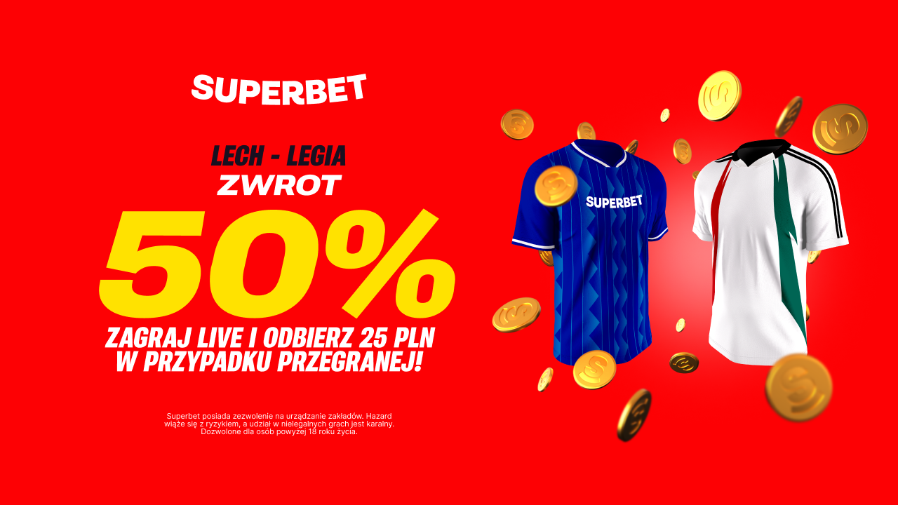 👉 Postaw kupon solo za min. 50 PLN, zawierający dowolny zakład na mecz Lech Poznań - Legia Warszawa z oferty na żywo "LIVE" z dnia 10.11.2024 roku.