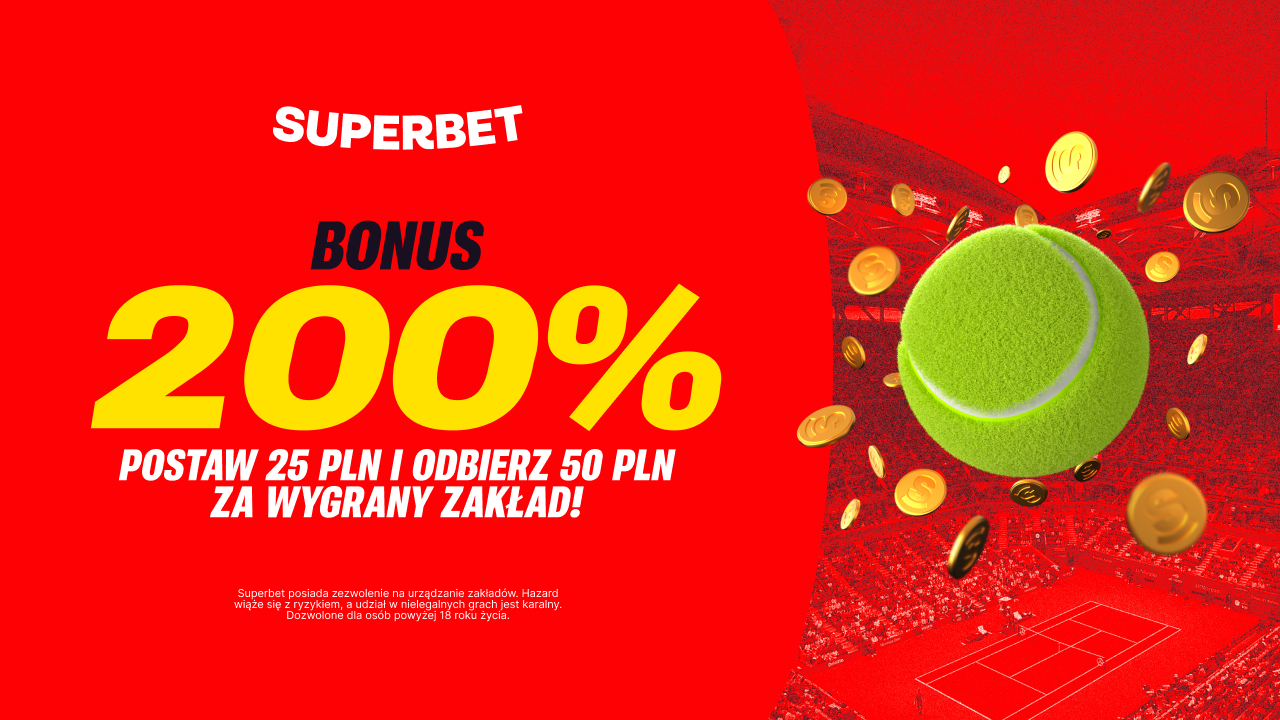 Postaw zakład na zbliżające się turnieje lub zawodników i podwój swoje wygrane dzięki tej wyjątkowej promocji. Zagraj za minimum 25 PLN i jeśli Twój zakład okaże się trafiony, dostaniesz aż 200% dodatkowych środków do kwoty 50 PLN! 🏆