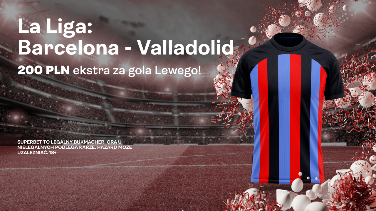 - Bonus w tej promocji to 200 PLN za poprawny typ na gola Lewandowskiego w meczu z Valladolid (Rodzaj zakładu: „Strzelec gola”, typ zakładu: „Lewandowski, Robert”) lub wygraną Barcelony (Rodzaj zakładu: „Mecz”, typ zakładu: „1”) z uwzględnieniem, że minimalna stawka zakładu to 2 PLN, ale w przypadku wyższej stawki, stawka zaliczana do promocji wynosi 2 PLN.