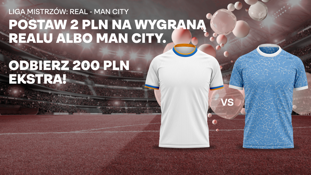 - Bonus w tej promocji to 200 PLN za poprawny typ na zwycięstwo Realu Madryt (typ zakładu: 1, wygrana gospodarzy w regulaminowym czasie gry) albo Manchesteru City (typ zakładu – 2, wygrana gości w regulaminowym czasie gry). M inimalna stawka kuponu to 2 PLN przy czym w przypadku wyższej stawki, stawka która zostanie zaliczona na poczet promocji wynosi 2 PLN.