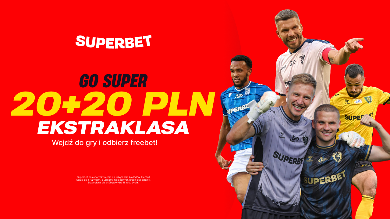 👉 Postaw za min. 20 PLN kupon, zawierający wyłącznie zakłady Superbets i/lub Bet Builder na mecze Ekstraklasy rozgrywane dnia 11.08 (niedziela).