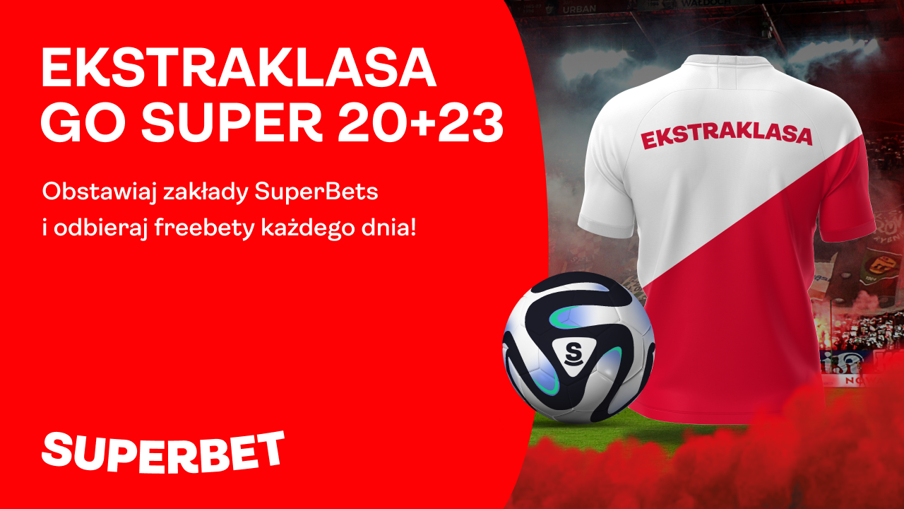 Czas na drugą kolejkę w naszej Ekstraklasie - przygotuj się na wielkie piłkarskie emocje! Niesamowita atmosfera polskiego futbolu może być jeszcze bardziej wyjątkowa, dzięki naszej superpromocji! Obstawiaj przedmeczowe zakłady SuperBets na ekstraklasowe spotkania i odbieraj freebety każdego dnia promocji - w piątek, sobotę oraz niedzielę! Gotowy do gry? No i SUPER!