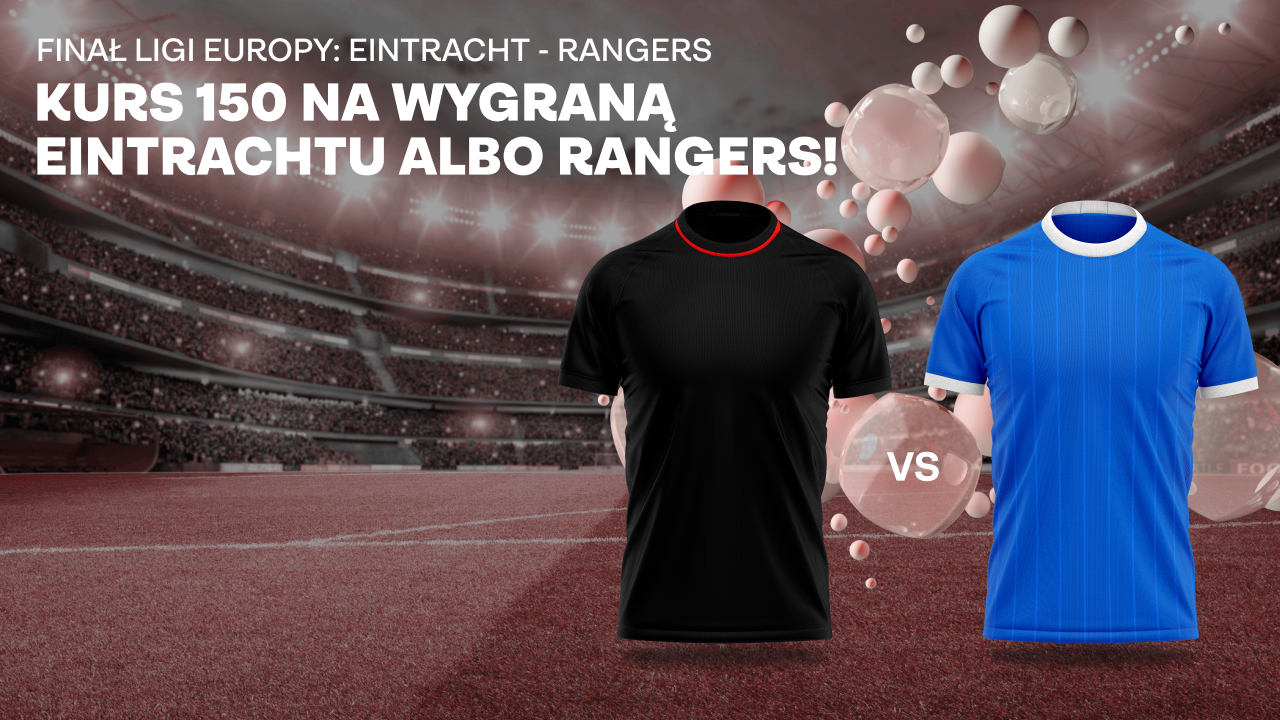 - Uczestnictwo w Promocji jest dobrowolne, a udział w niej biorą wyłącznie Gracze, którzy założyli konto w dniach objętych promocją oraz zawarli pierwszy kupon, na którym znajduje się typ z oferty przedmeczowej na wygraną Eintrachtu Frankfurt albo Glasgow Rangers (mecz odbędzie się w dniu 18.05.2022) oraz uprzednio wyrazili zgody marketingowe. Każdy Gracz spełniający powyższe warunki może otrzymać jeden taki bonus.