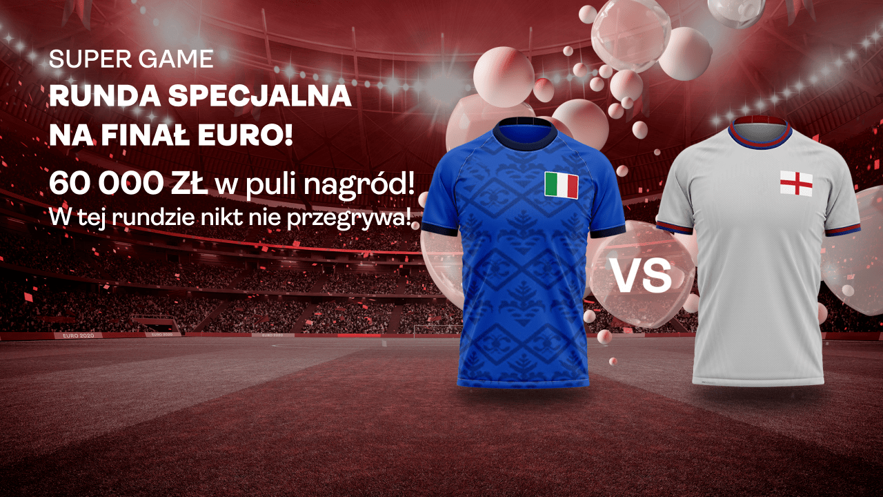 W rundzie specjalnej Super Game na finał EURO, która wystartuje 08.07., o godz. 11:00, nagrodzimy wszystkich uczestników. Wystarczy zarejestrować konto i udzielić odpowiedzi na 4 pytania dotyczące meczu o tytuł Mistrza Europy.