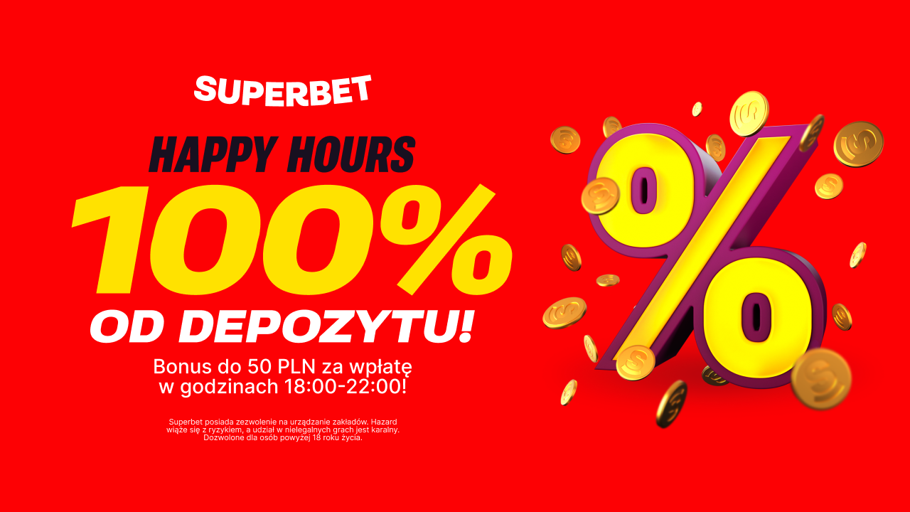 Wpłać depozyt w godzinach 18:00-22:00 i zgarnij dodatkowe 100% w bonusie, który pozwoli Ci jeszcze lepiej wykorzystać naszą kuszącą ofertę zakładów. Do zgarnięcia aż do 50 PLN - skusisz się? No i SUPER! 🙌