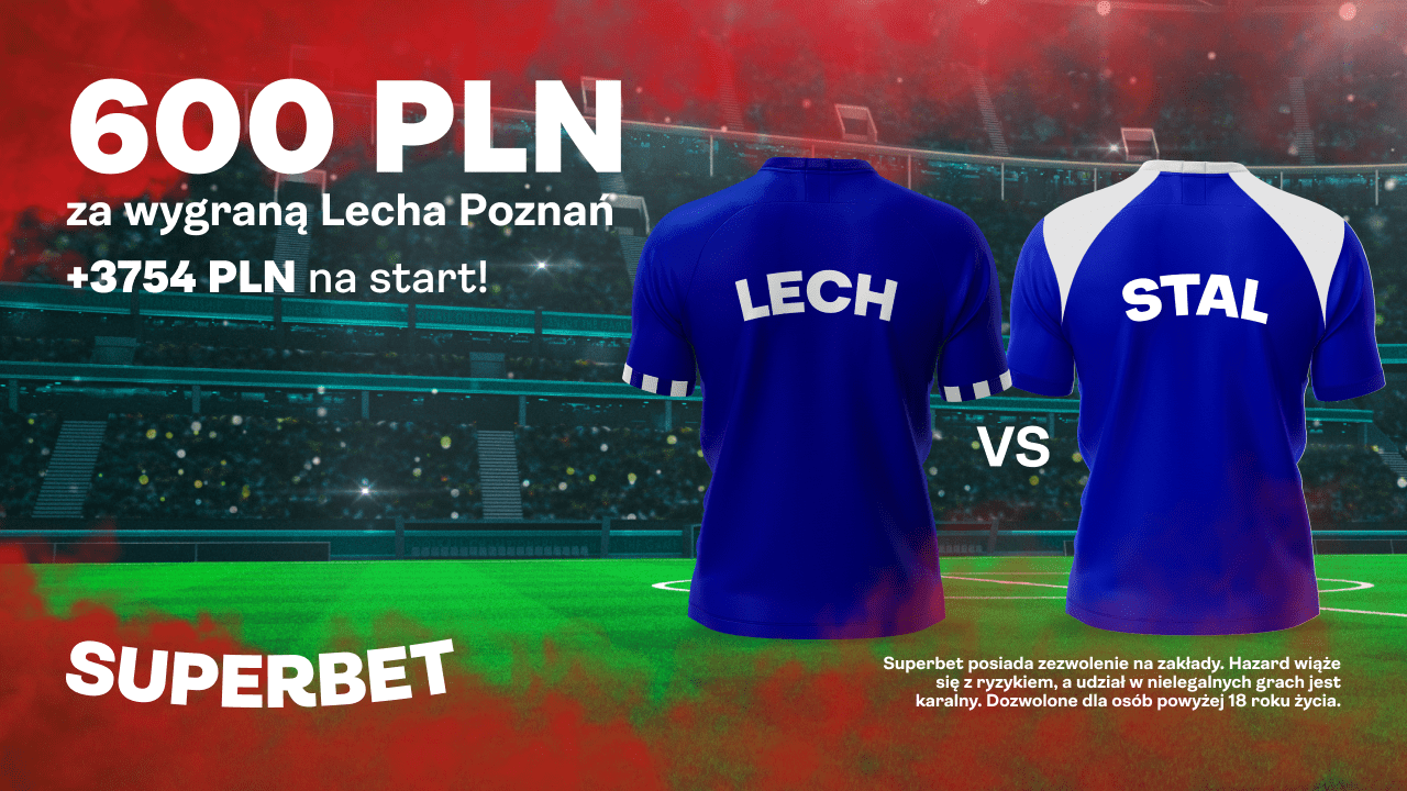 Jeżeli Gracz postawi pierwszy kupon singiel po założeniu konta ze stawką co najmniej 2 PLN wybierając z oferty zakład na wygraną Lecha Poznań w meczu ze Stalą Mielec i zakład zostanie rozliczony jako wygrany, Gracz otrzyma regularną wygraną za kupon oraz bonus w wysokości 600 PLN.