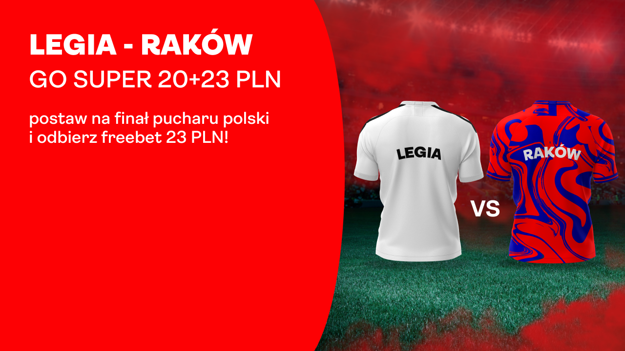 - Postaw zakład singiel za min. 20 PLN na dzisiejszy mecz Legia - Raków (finał Pucharu Polski).