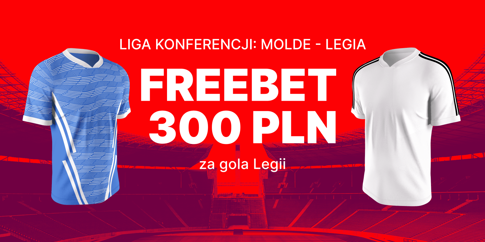 - Za poprawny typ na gola Legii w meczu z Molde, Gracz otrzyma Freebet 300 PLN z uwzględnieniem, że minimalna stawka zakładu to 2 PLN, ale w przypadku wyższej stawki, stawka zaliczana do promocji wynosi 2 PLN.