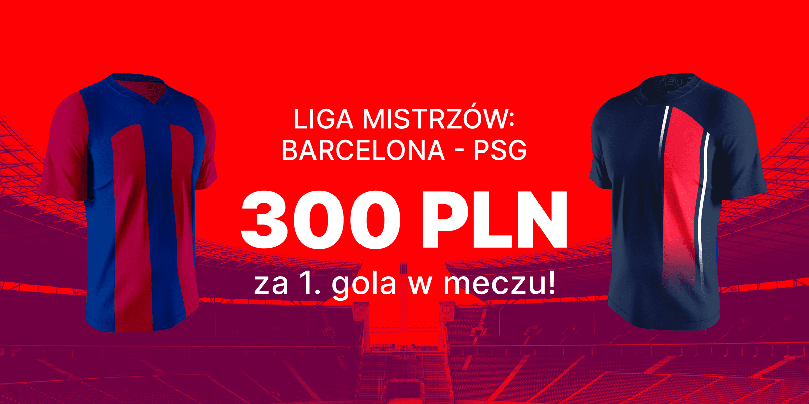 Jeżeli Gracz postawi pierwszy kupon singiel po założeniu konta ze stawką co najmniej 2 PLN wybierając z oferty typ na 1. gola Barcelony i zakład zostanie rozliczony jako wygrany, Gracz otrzyma regularną wygraną za kupon oraz Bonus w wysokości 300 PLN.