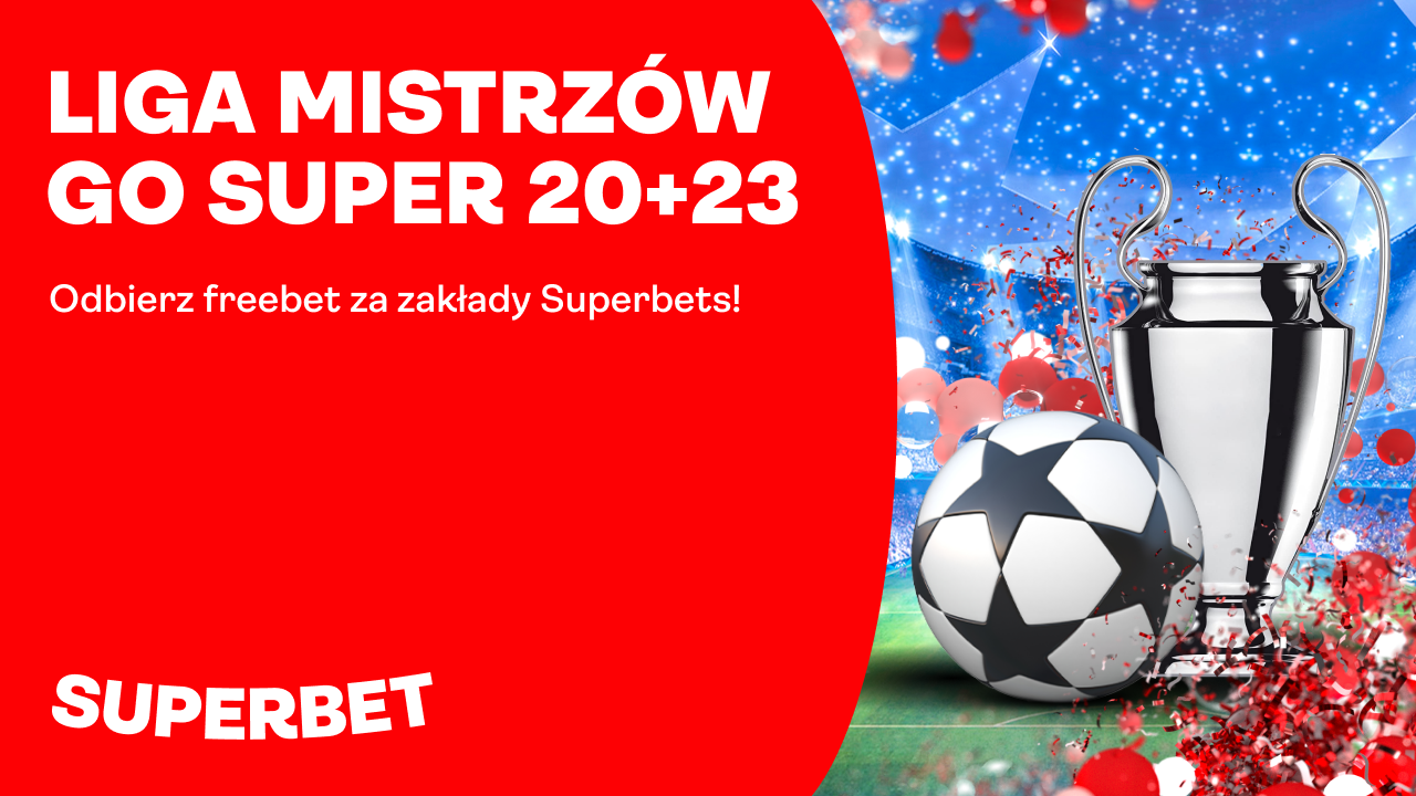 - Postaw za min. 20 PLN zakład SuperBets (singiel) na dowolny mecz Ligi Mistrzów UEFA z dzisiejszego dnia.