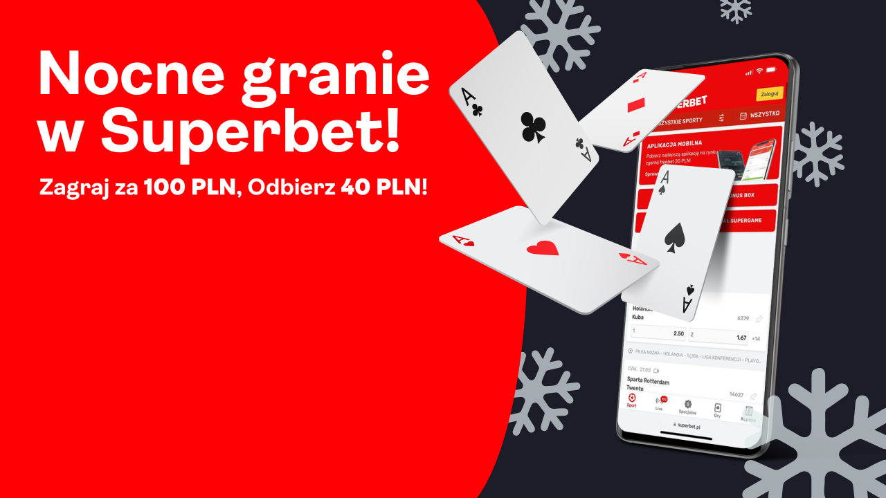 Nocne granie jeszcze nigdy nie było tak atrakcyjne! Zwłaszcza, że grudniowe noce należą do najdłuższych w roku! Odbierz 40 PLN bonus za nocne granie, a doświadczysz rozrywki na zupełnie nowym poziomie! Możesz grać w nie z dowolnego miejsca, używając komputera, smartfona lub tabletu. Niech noc stanie się Twoim sojusznikiem w grach karcianych!