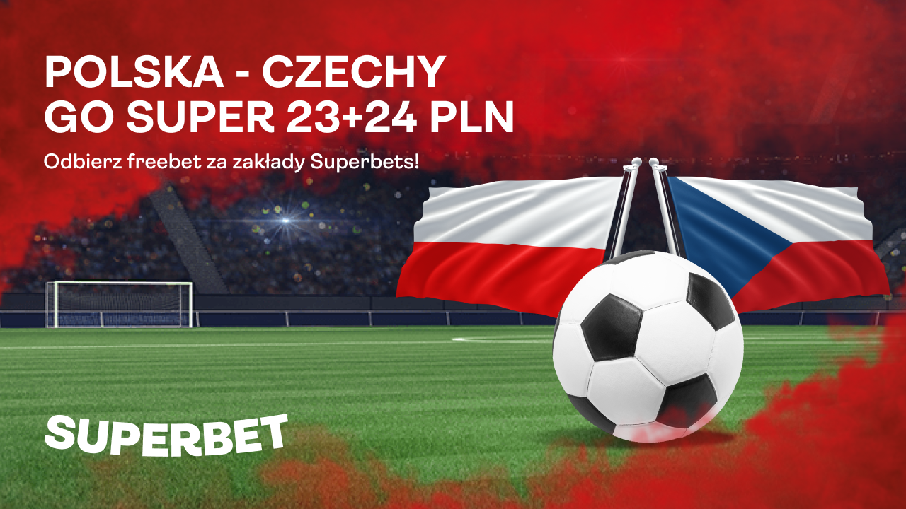 - Postaw za min. 23 PLN zakład Superbets (singiel) na dzisiejszy mecz Polska - Czechy (eliminacje EURO 2024).