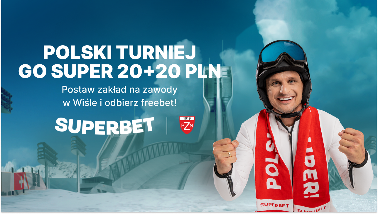 Poczuj ekscytujący klimat skoków narciarskich wspólnie z Superbet, oficjalnym partnerem reprezentacji Polski! Czy nasi skoczkowie dostaną skrzydeł na własnym terenie? Wszyscy mamy taką nadzieję! Skorzystaj z wyjątkowej promocji, zgarnij freebet 20 PLN i kibicuj naszym orłom w konkursie drużynowym!