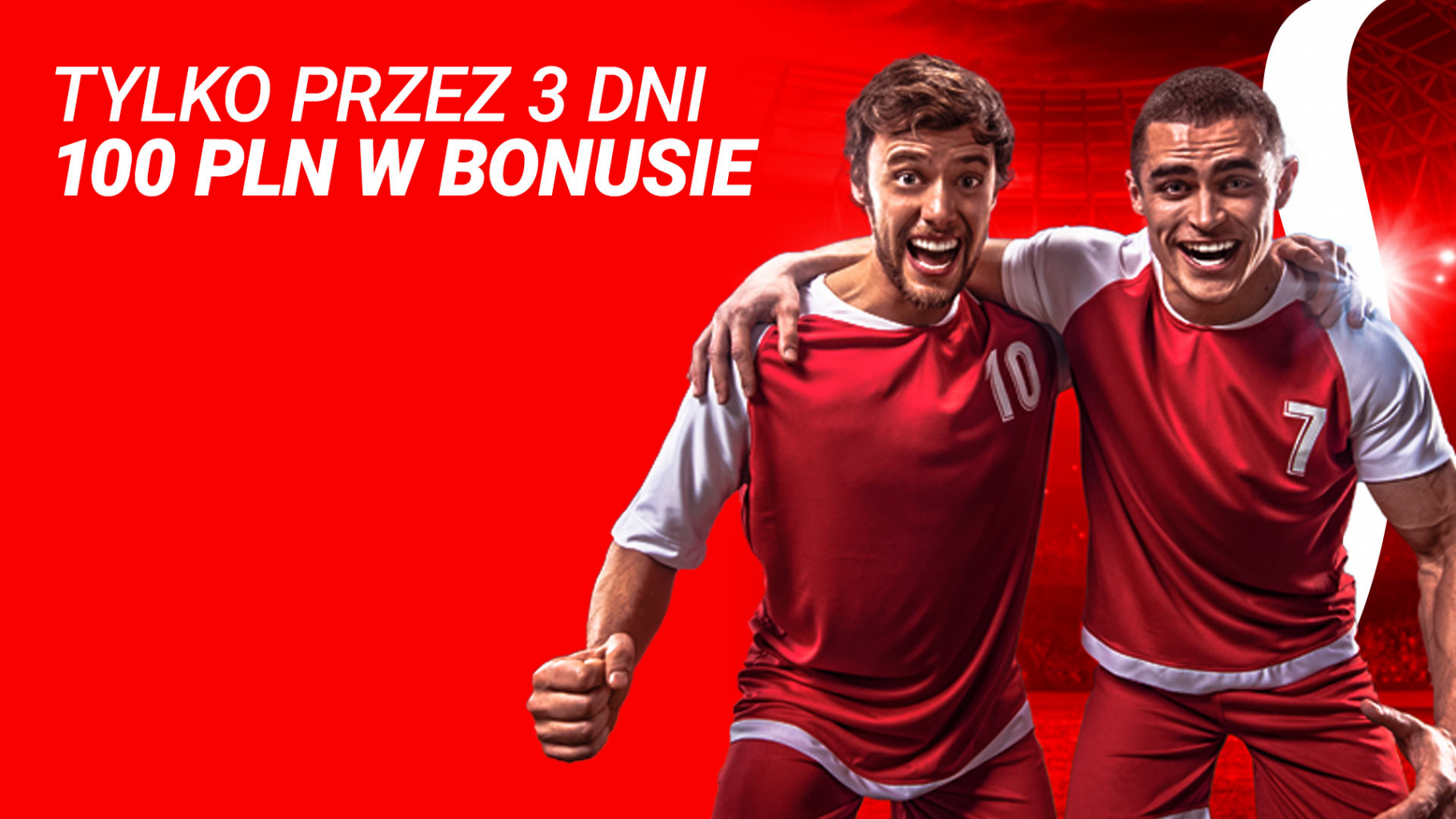 Promocja obowiązuje tylko przez 3 dni, a bonus otrzymasz najpóźniej 48 godzin po jej zakończeniu. Warto postawić zakład lub zakłady AKO od razu i zyskać 100 PLN w bonusie.