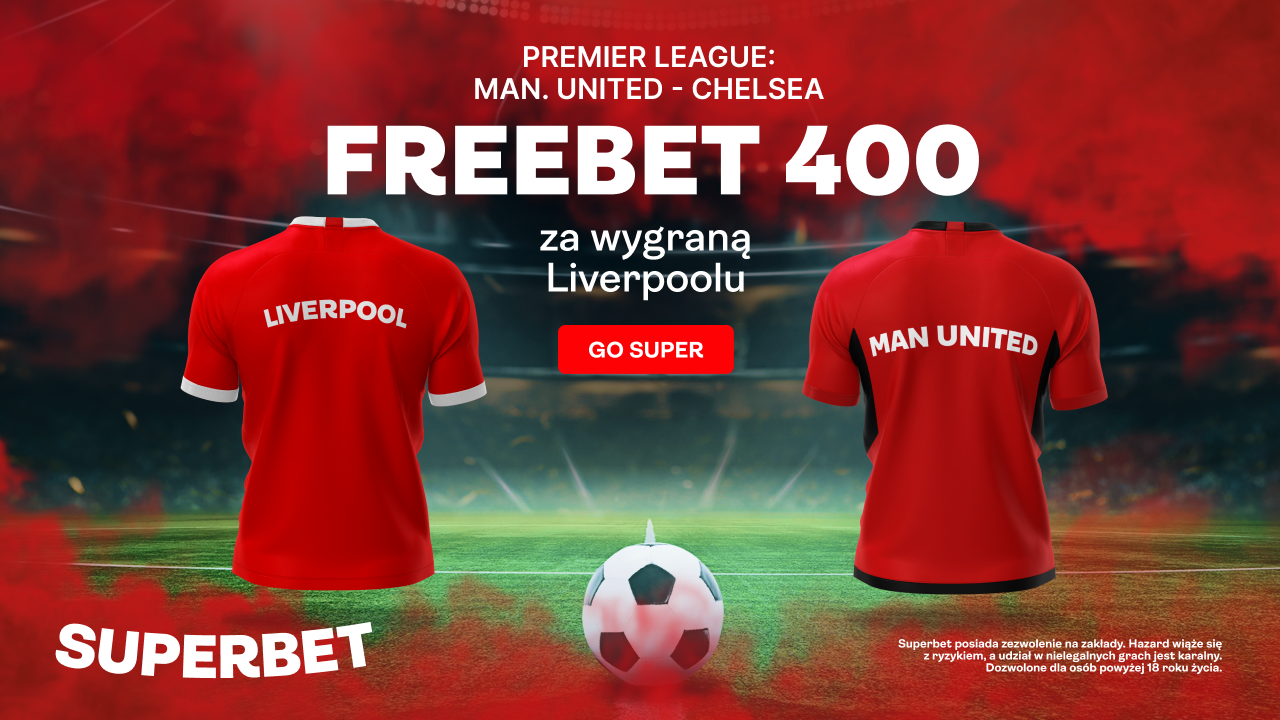 Freebet 400 PLN za wygraną Liverpoolu w meczu z Manchesterem United.
