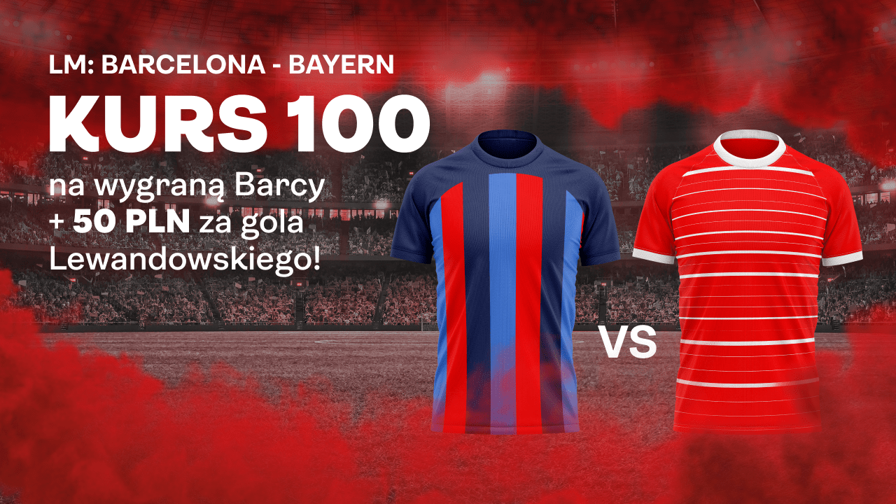 - Uczestnictwo w Promocji jest dobrowolne, a udział w niej biorą wyłącznie Gracze, którzy założyli konto w dniach objętych promocją oraz zawarli pierwszy kupon, na którym znajduje się typ z oferty przedmeczowej na zwycięstwo Barcelony w meczu z Bayernem (mecz odbędzie się w dniu 26.10.2022) oraz uprzednio wyrazili zgody marketingowe.